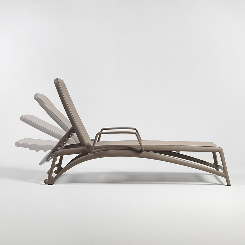 符合人體工學的形狀,均勻靈活地適應體重,以及線性設計:Atlantico 是一款採用玻璃纖維框架和透氣、可互換面料的日光躺椅。靠背可調整至四個位置。可堆疊。