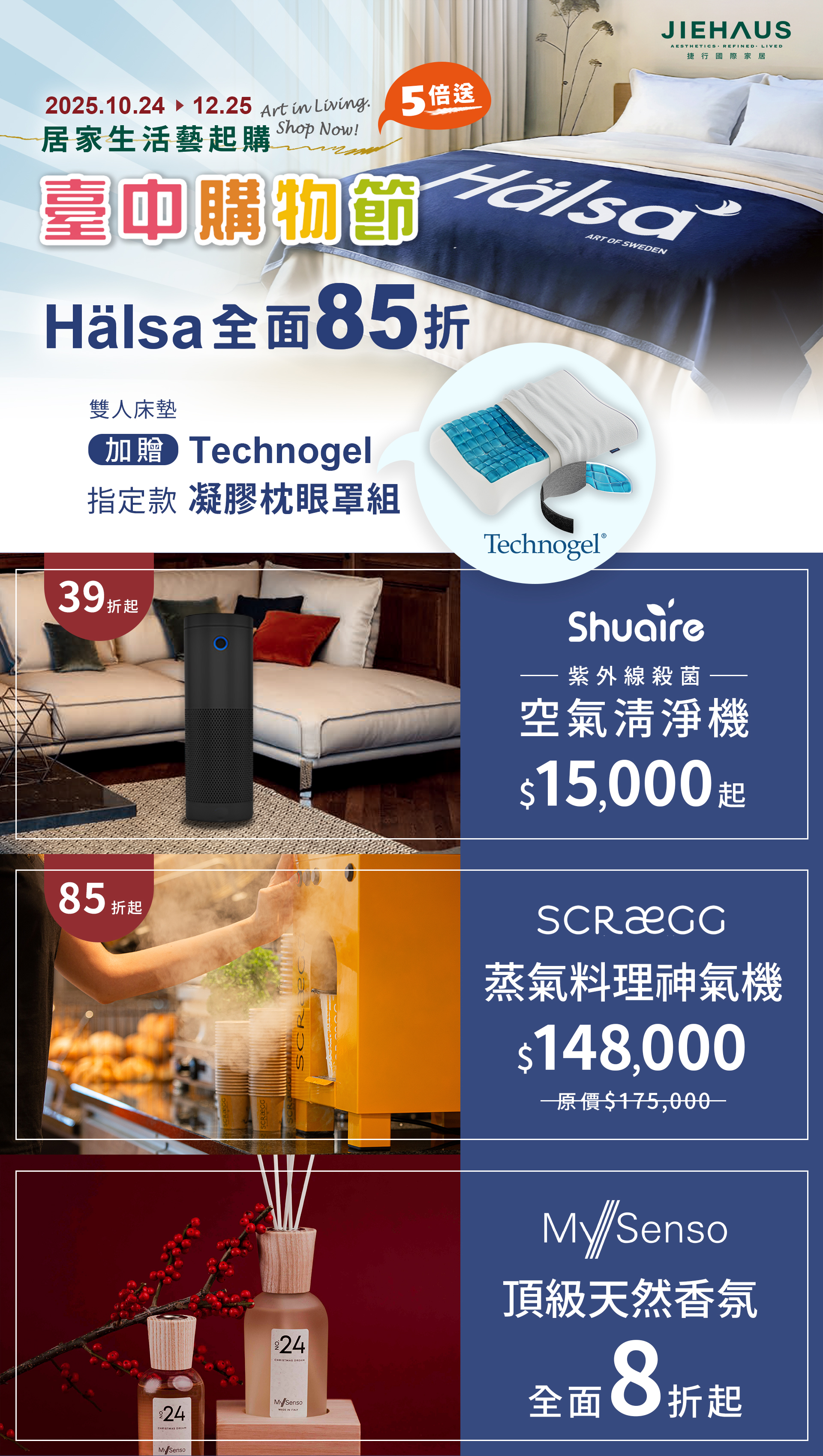 台中市西屯區市政北一路1號 0800-885-597 marketing@jiehaus.com 11:00 - 20:00